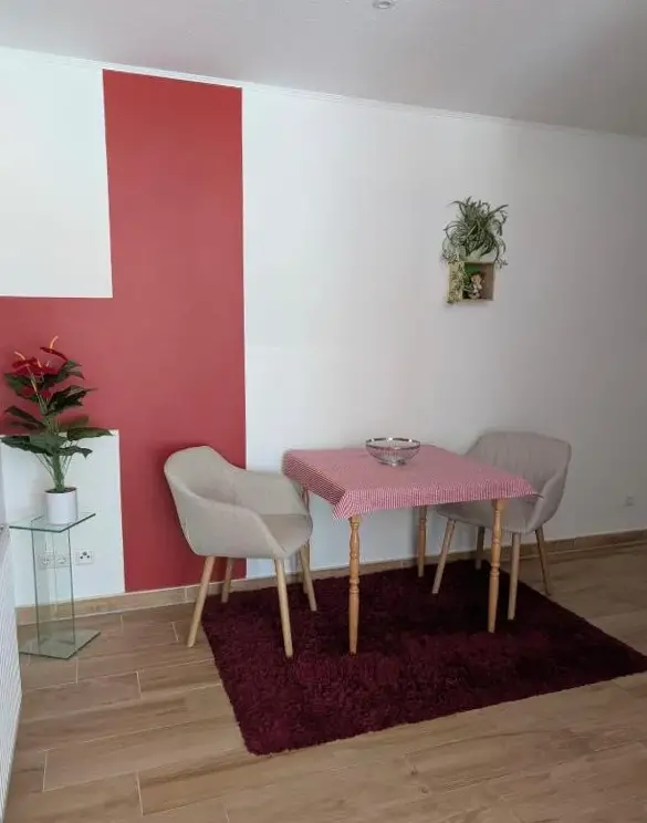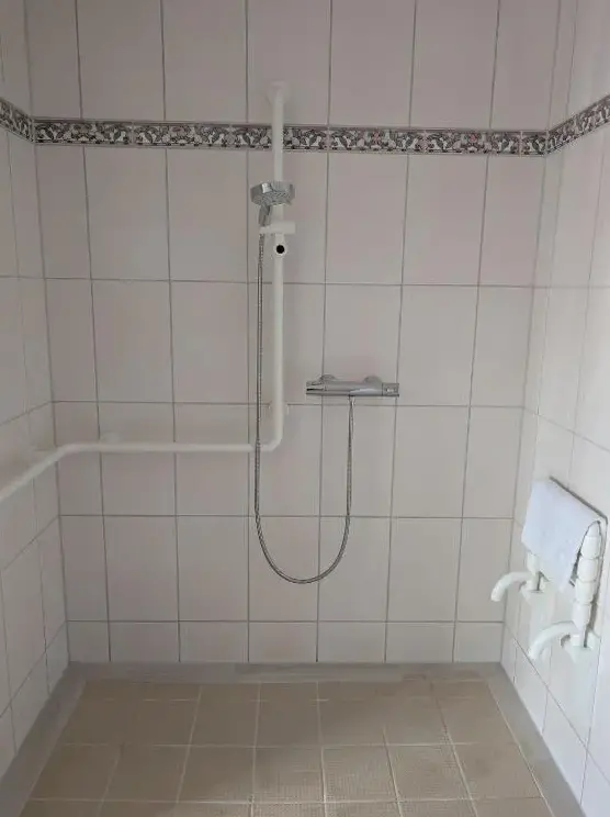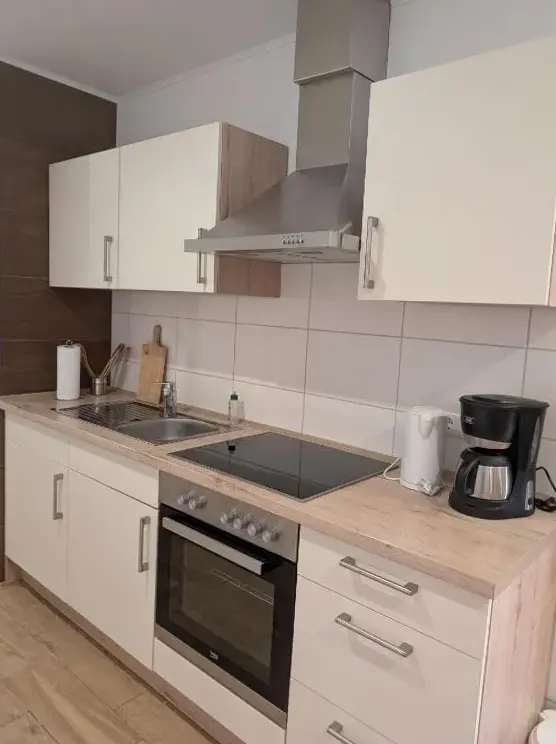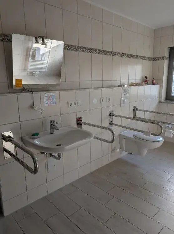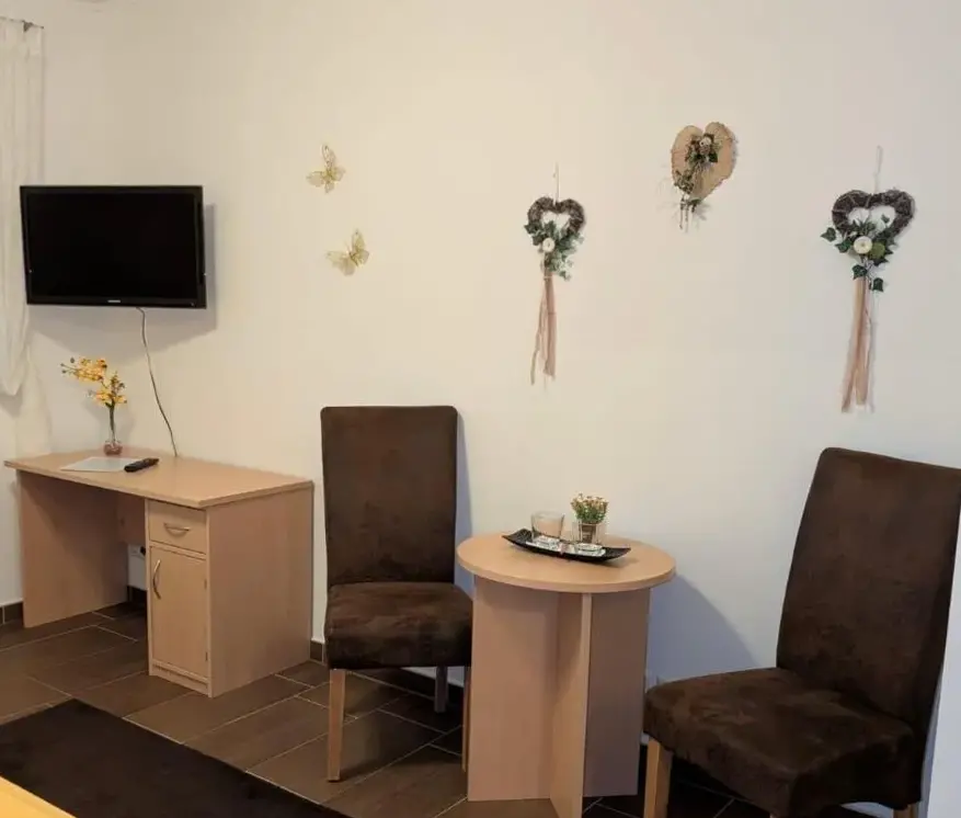 More information about Pension zum ReiterhofPension zum Reiterhof, Fewo 2 provides a one-bedroom apartment featuring a sun terrace and garden. The unit includes modern amenities like a kitchenette, dining area, and walk-in shower. Guests have access to private check-in/check-out services, an outdoor fireplace, and electric vehicle charging options.