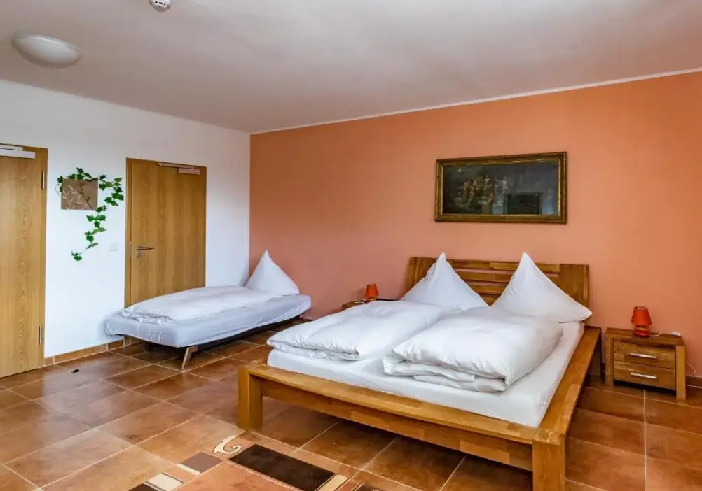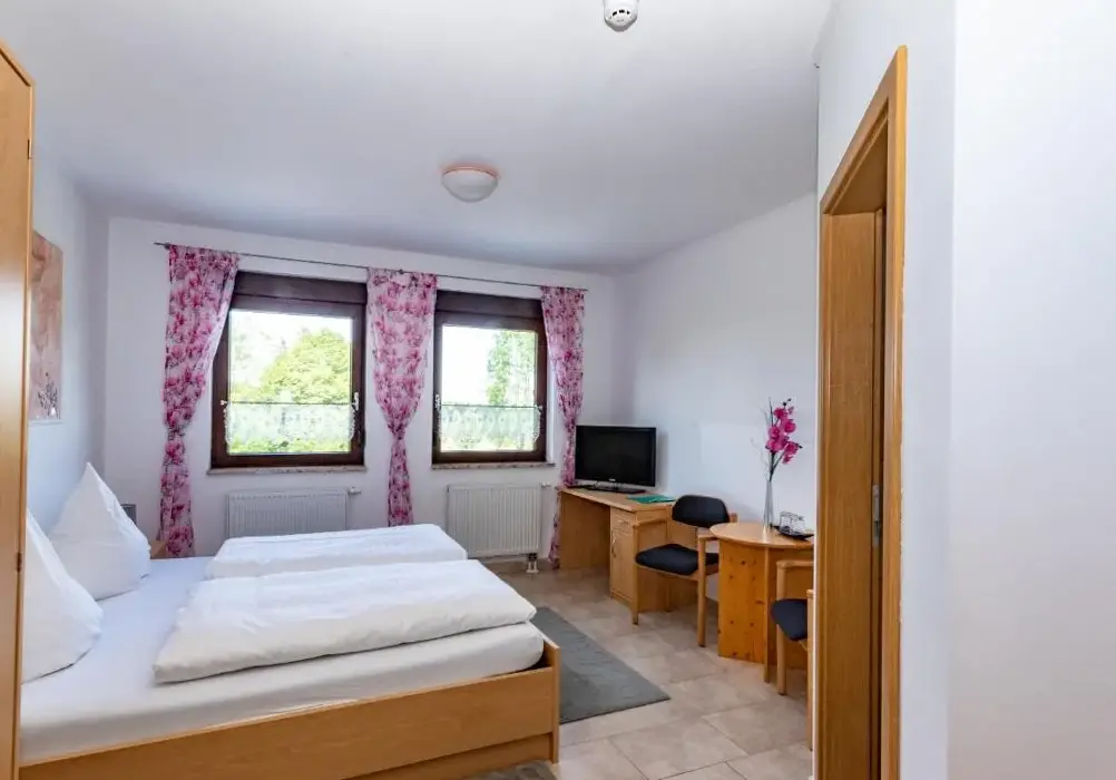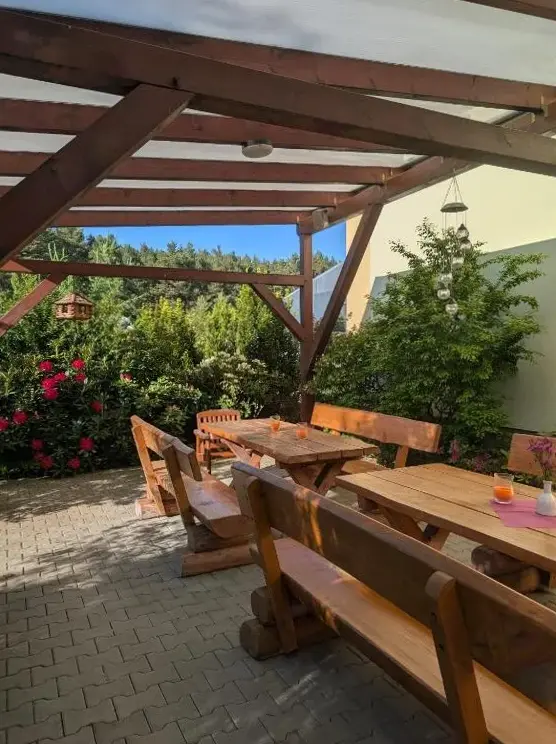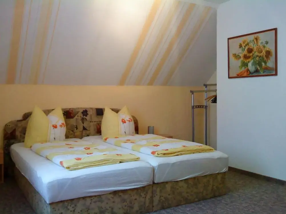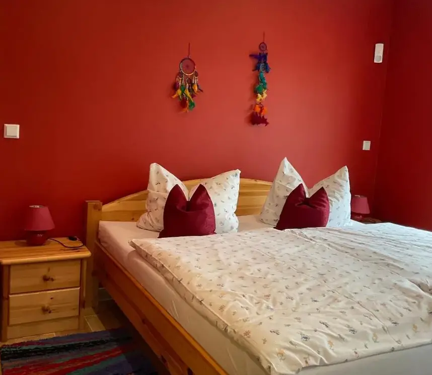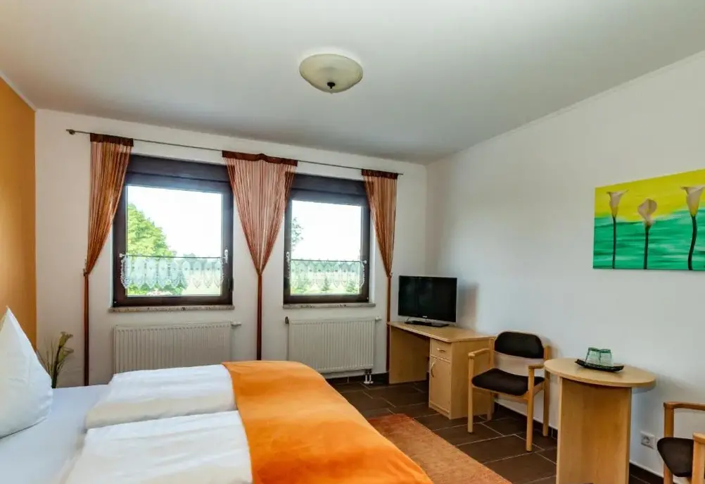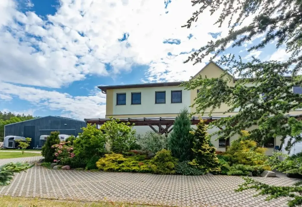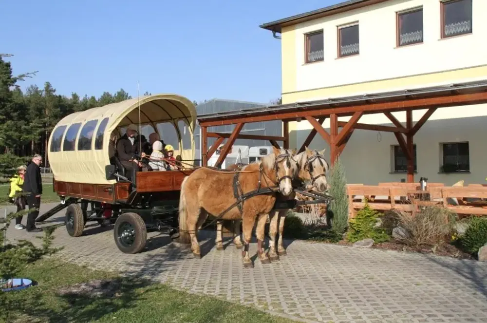 More information about Pension zum Reiterhof, Fewo 2Pension zum Reiterhof, Doppelbettzimmer provides comfortable accommodations in Schmogrow, Germany. The property features spacious guest houses equipped with private check-in and check-out options, along with an outdoor fireplace and dietary-friendly meal choices. Guests have access to a coffee shop, outdoor seating areas, picnic spots, and secure bicycle storage.