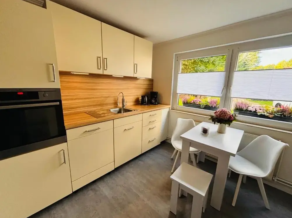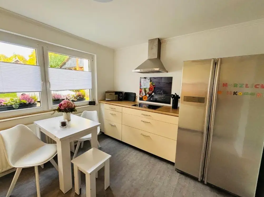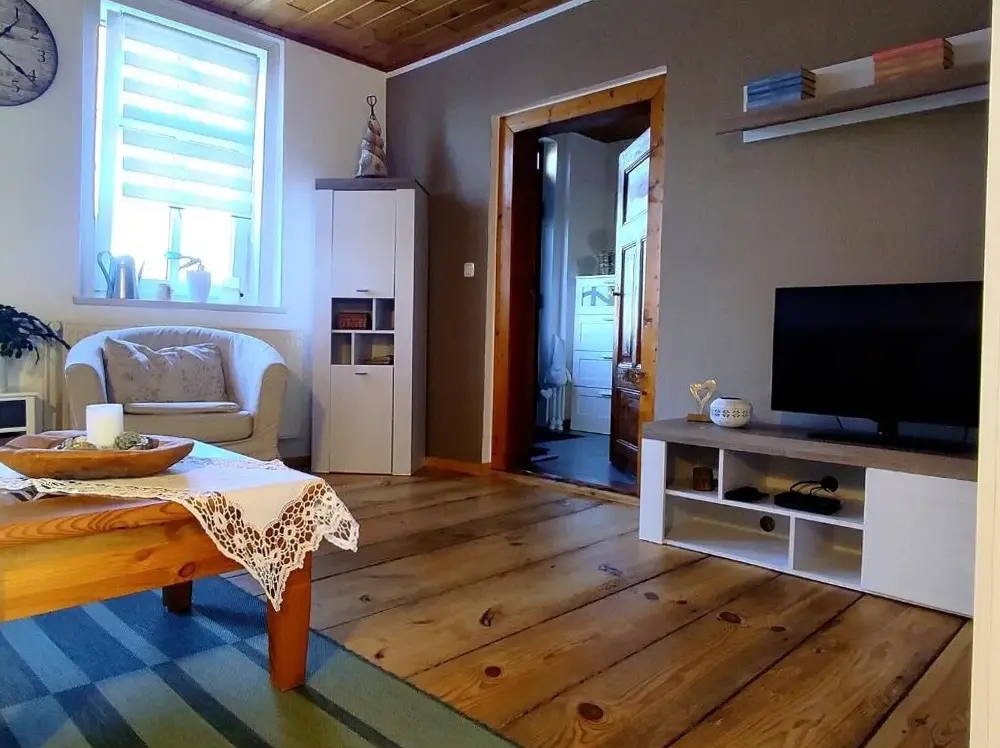 Más información sobre La Maison Pritzwalk - Bett & BikeFerienwohnung Zur Alten Schule es un apartamento situado en Dorfstraße Kemnitz 14, 16928 Pritzwalk, Alemania. Este alojamiento ofrece un espacio amplio y confortable ideal para viajeros que buscan tranquilidad y comodidades básicas. El apartamento se encuentra en la planta baja y dispone de una habitación principal, zona de estar y cocina equipada con comedor y sofá cama.