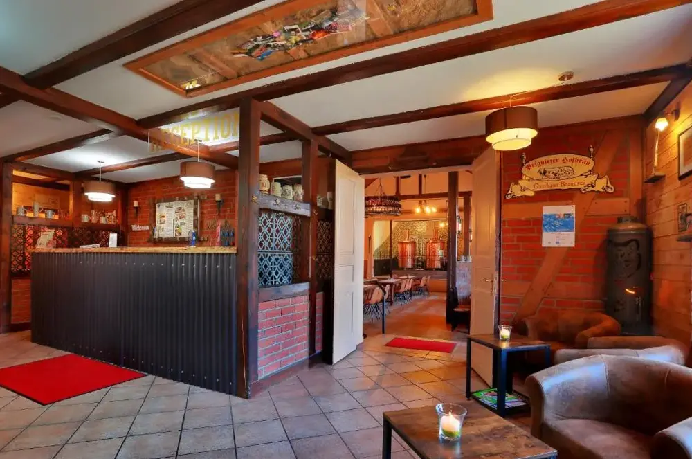 Más información sobre Hotel FalkenhagenEl Landhotel & Brauhaus Prignitzer Hof se encuentra en Hauptstraße Buchholz 4, 16928 Pritzwalk, Alemania, a solo 3,5 km del centro. Este establecimiento ofrece alojamiento con conexión WiFi gratuita, terraza con vista al jardín y servicios como alquiler de bicicletas. Las habitaciones son amplias y luminosas, equipadas con TV, teléfono y baño privado con ducha.