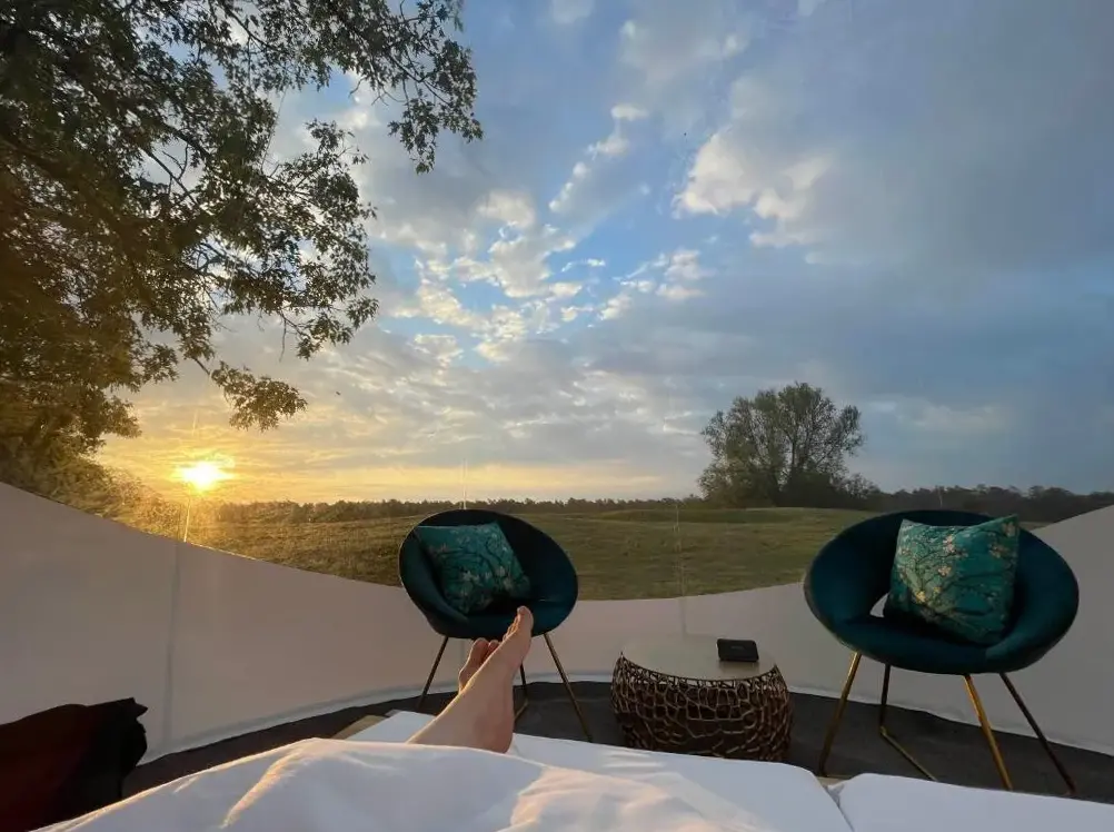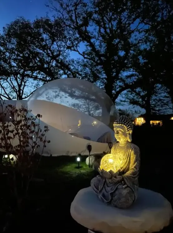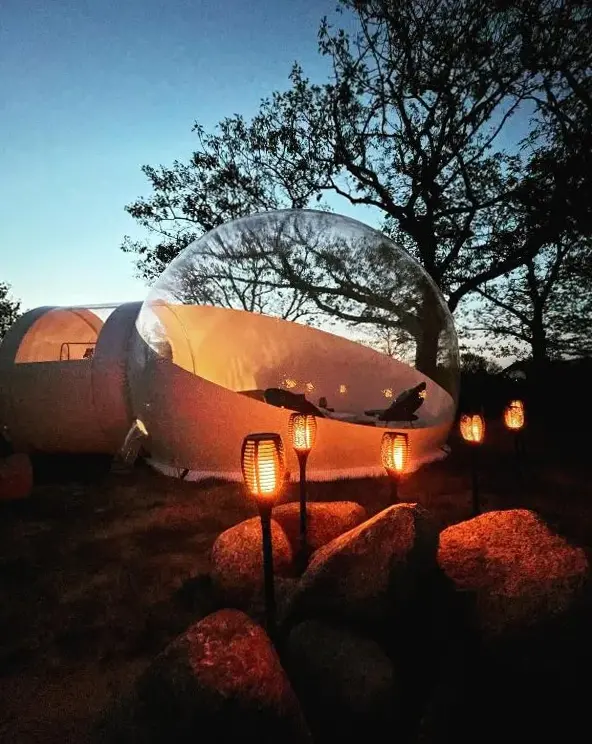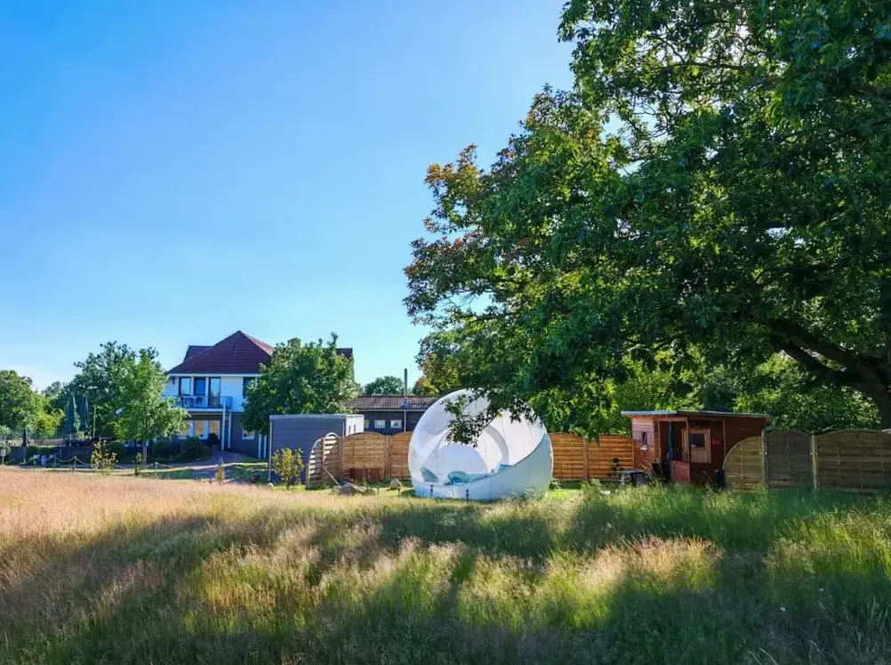 L'hébergement élégant Bubble Tent by Reindahls se trouve à Prötzeler Straße 1, 15345 Wilkendorf, Allemagne. Cette tente de luxe dispose d'une installation de spa, d'une terrasse solaire et d'un joli jardin. Les clients peuvent bénéficier d'un service d'enregistrement et de départ privé, ainsi que de forfaits de bien-être, d'un café et d'un coin salon en plein air.