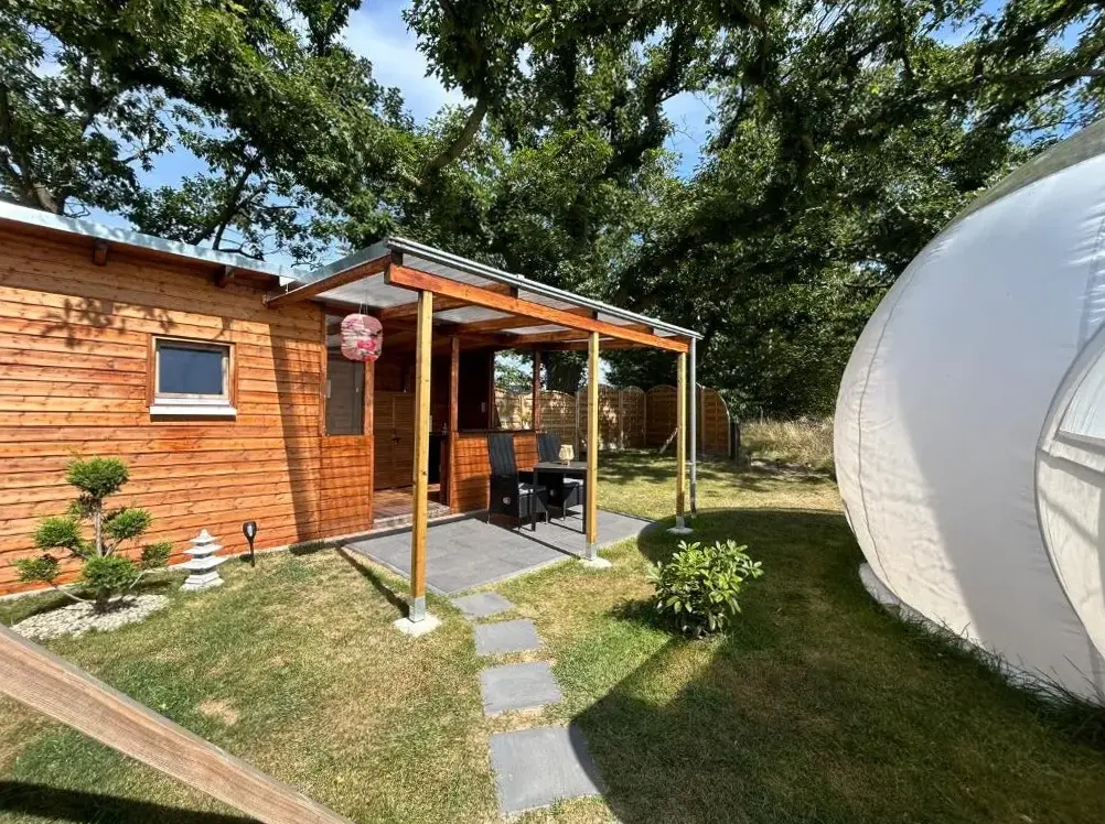 Plus d'informations sur Bubble Tent by ReindahlsBuchholz Saloon est un hébergement élégant situé à Altlandsberg, en Allemagne. Ce logement offre une ambiance chaleureuse et détendue, idéal pour un séjour reposant. La propriété dispose d'une terrasse solaire ainsi qu'un jardin luxuriant, permettant aux résidents de profiter d'espaces verts et d'ensoleillés.
