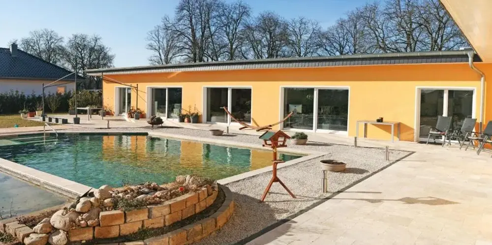 Ferienhaus zum Imker é uma casa de férias situada em Velten, oferecendo acomodações confortáveis com dois quartos e uma sala de estar. A propriedade conta com um terraço solar, jardim e piscina ao ar livre disponível durante todo o ano. Disponibiliza wifi gratuito e instalações como bicicletas gratuitas, área de estar ao ar livre e churrasco.