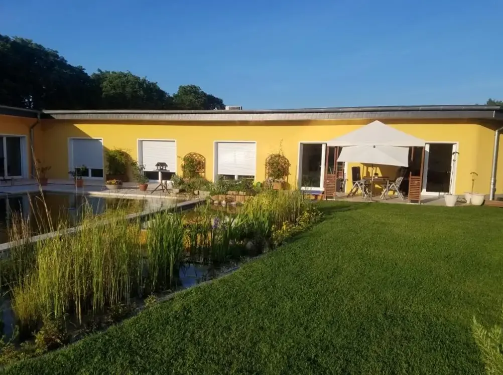 Mais Informações sobre Ferienhaus zum ImkerBlumenhaus é um apartamento espaçoso situado na Breite Strasse 30, 16727 Velten, Alemanha. Oferece um ambiente confortável com banheiro privativo, cozinha totalmente equipada e área de jantar. Os hóspedes desfrutam de vistas para o jardim e acesso a uma entrada particular. A propriedade conta com instalações relaxantes como sauna, lareira ao ar livre e área de estar externa.