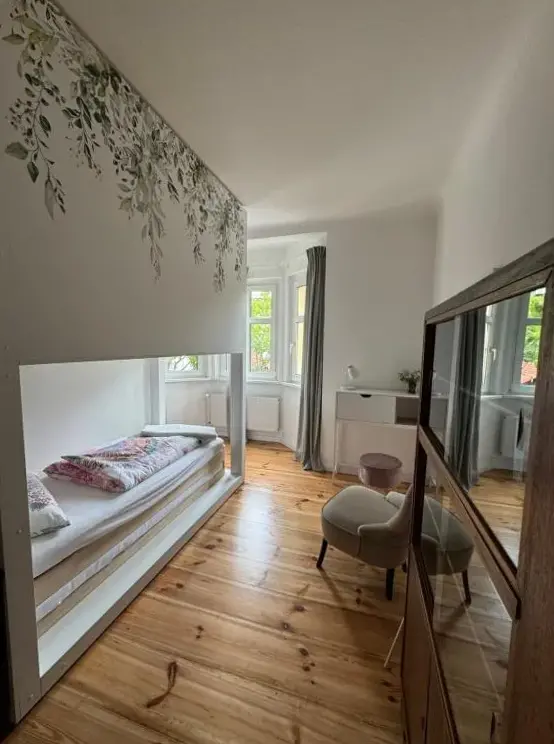 Mais Informações sobre BlumenhausA FeWo04 localizada na Viktoriastraße 54, em Velten (Alemanha), oferece acomodação confortável e bem equipada para até seis pessoas, ideal para grupos ou famílias que buscam espaço flexível. A unidade destaca-se por sua decoração moderna e criativa, com dois quartos projetados de forma funcional: além das camas principais, os ambientes podem ser aproveitados como áreas comuns graças à presença de